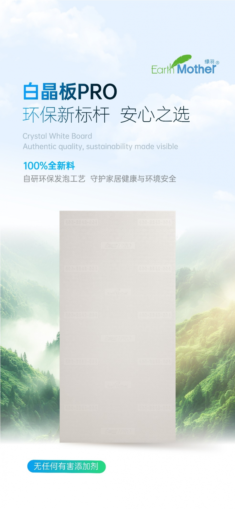 2026年4月1日起,绿羽全线产品正式停用再生料,100%采用全新原生材料生产。此前广受认可的节能蓝板与臻白板同步光荣退役,由晶系列、极系列、逸境系列三大全新料产品线全面接棒。